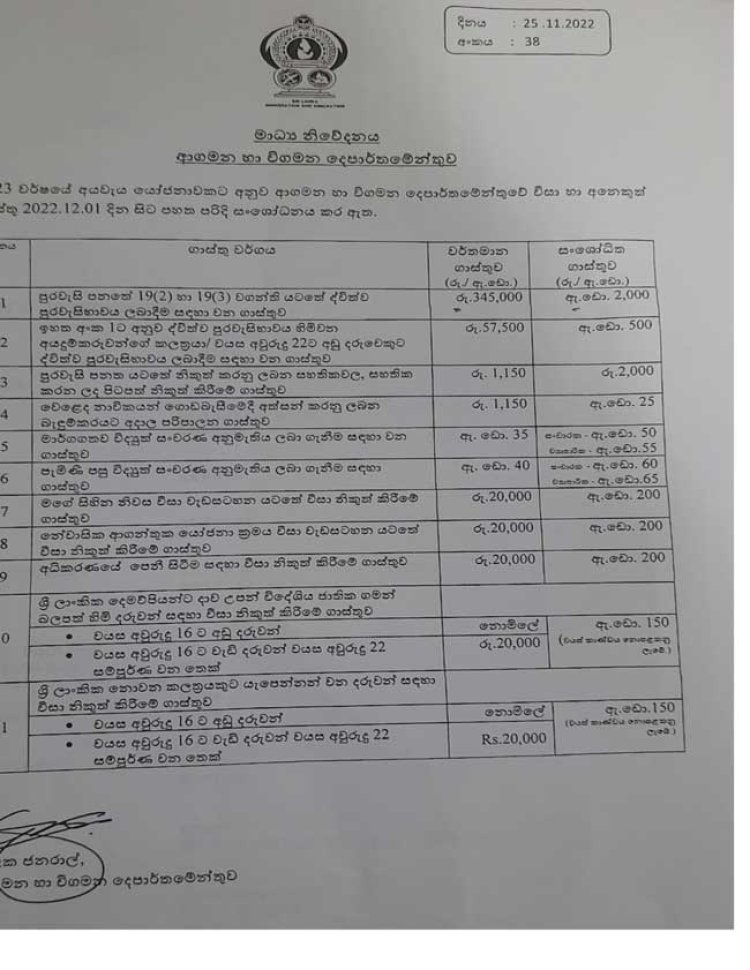 விசா மற்றும் ஏனைய கட்டணங்களும் அதிகரிப்பு