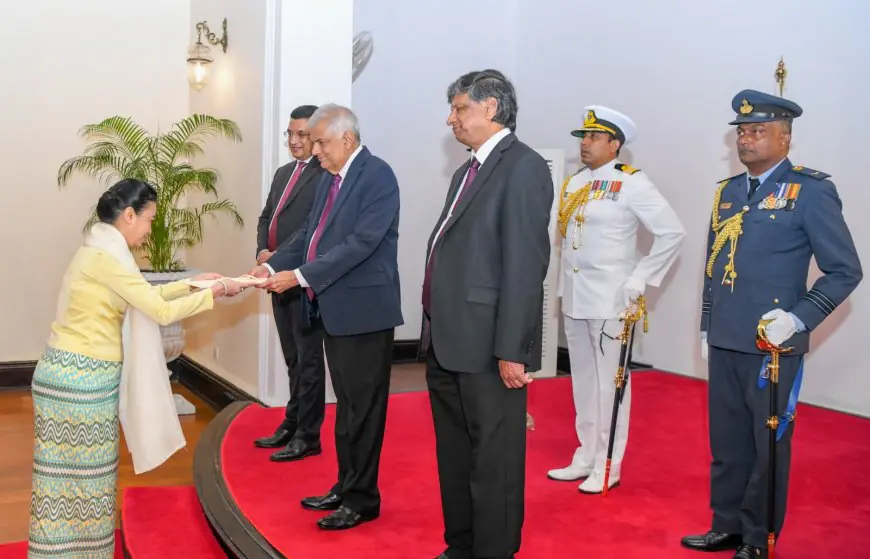 இலங்கைக்கு புதிதாக நியமனம் பெற்ற மூன்று தூதுவர்களும் இரண்டு உயர்ஸ்தானிகர்களும் ஜனாதிபதியிடம் நற்சான்றிதழ்களை கையளித்தனர்.