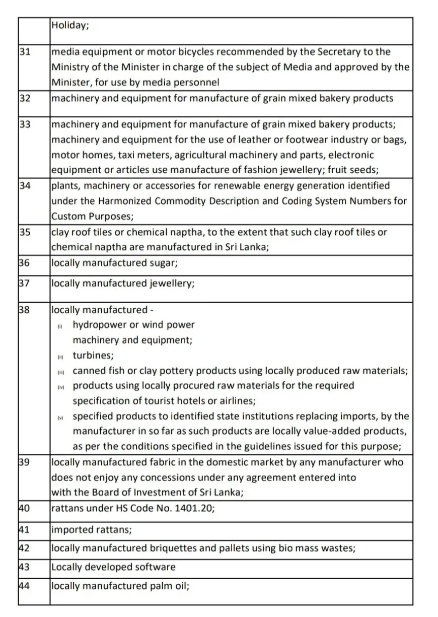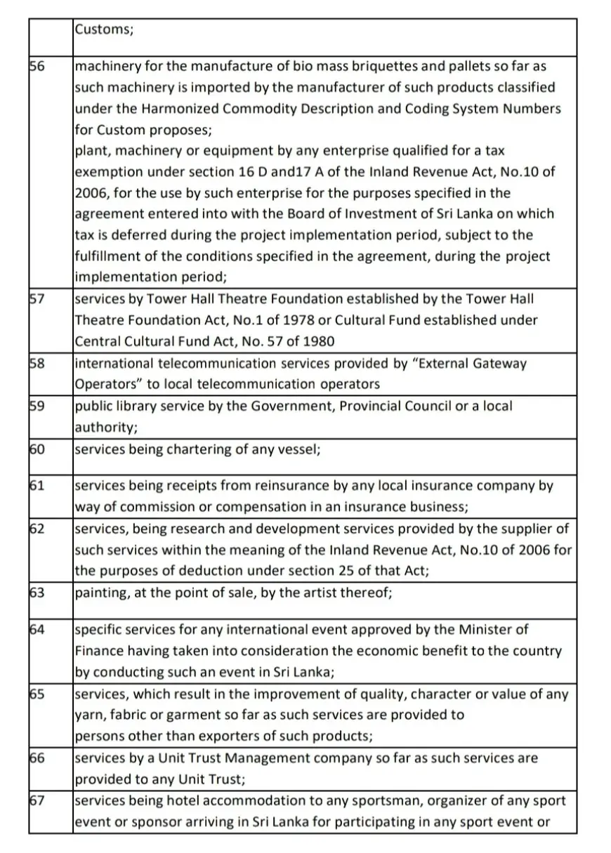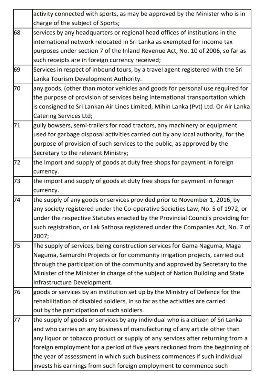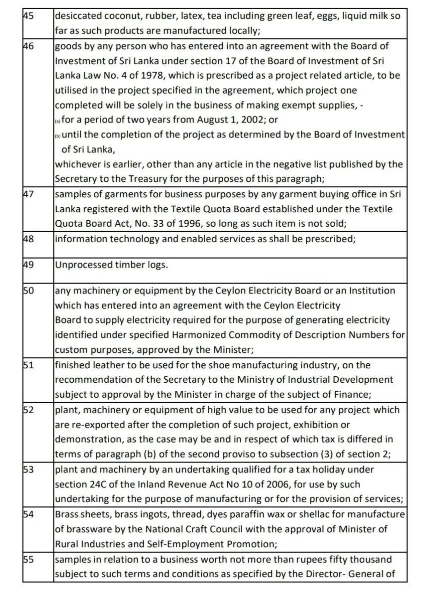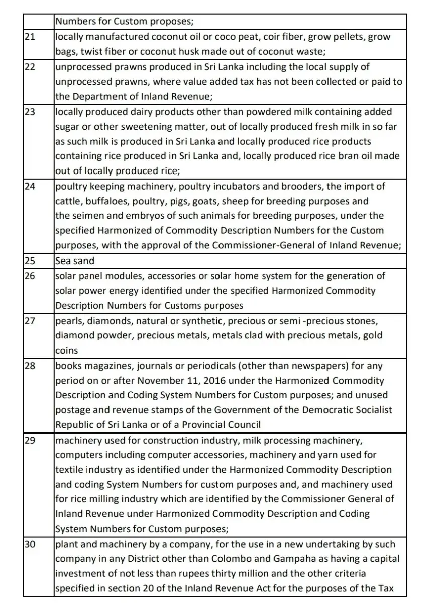 இவ்வாறு அமுலுக்கு வரும் பெறுமதி சேர் வரிக்கு உட்பட்ட பொருட்களின் பட்டியலை இராஜாங்க அமைச்சர் ஷெஹான் சேமசிங்க பாராளுமன்றத்தில் நேற்று (11) சமர்ப்பித்தார்.