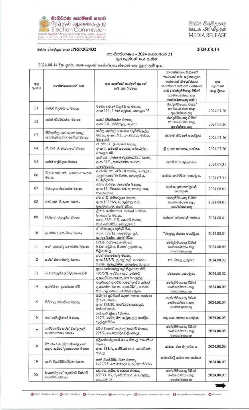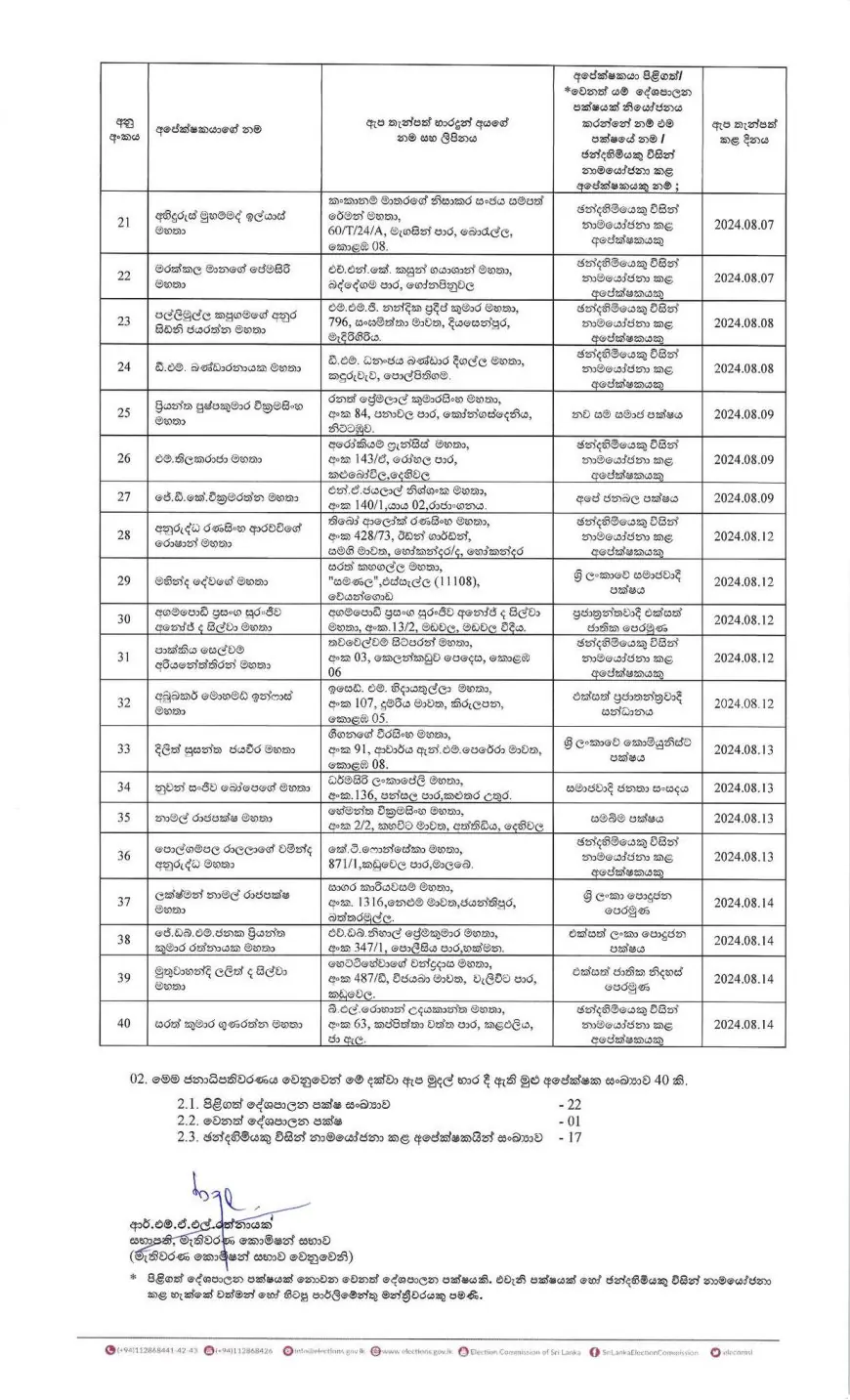 2024ஆம் ஆண்டு ஜனாதிபதித் தேர்தலுக்கான கட்டுப்பணம் செலுத்துவதற்கான நடவடிக்கை புதன்கிழமை நண்பகல் 12 மணியுடன் நிறைவடைந்தது.