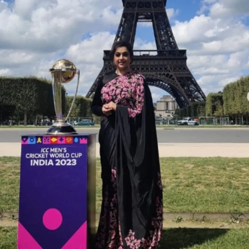 Cricket World Cup 2023: வரும் அக்டோபர் மாதம் உலக நாடுகள் மோதும் ஐசிசி உலக கோப்பை கிரிக்கெட் போட்டி நடைபெற உள்ளது. இந்நிலையில், அதனை முன்னிட்டு பிரான்ஸ் தலைநகர் பாரீஸில் நடைபெற்ற நிகழ்ச்சியில் உலக கோப்பை 2023ஐ அறிமுகப்படுத்தி உள்ளார் நடிகை மீனா.