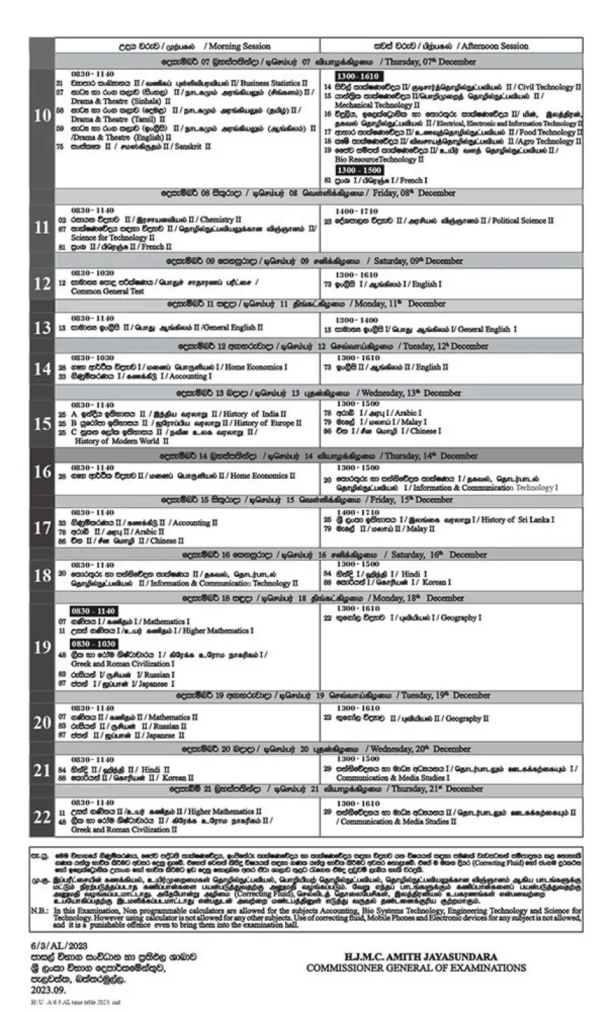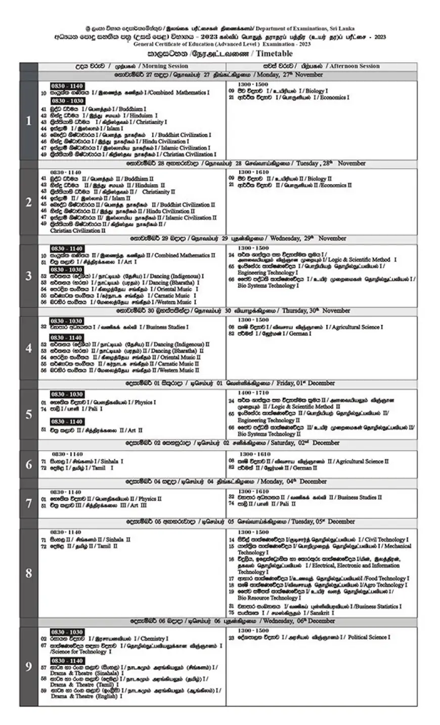 2023ஆம் ஆண்டுக்கான க.பொ.த உயர்தரப் பரீட்சை தொடர்பான அட்டவணை பரீட்சை திணைக்களத்தால் வெளியிடப்பட்டுள்ளது.