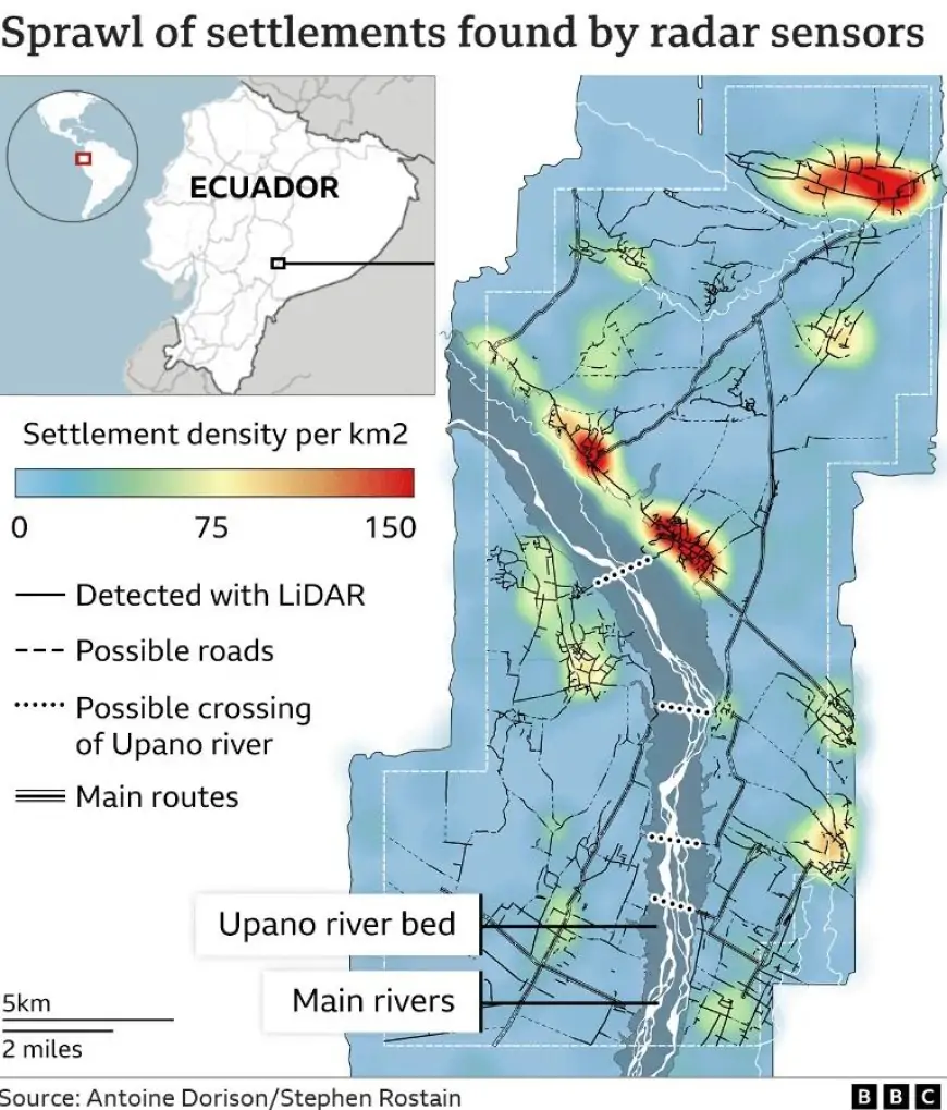 இந்த லேசர் சென்சார்கள் மூலம் சேகரிக்கப்பட்ட தகவல்களை ஒருங்கிணைத்து, தொல்பொருள் ஆராய்ச்சியாளர்கள் அகழ்வாராய்ச்சி செய்து, அடர்ந்த காடுகளுக்கு அடியில் நகரத்தை கண்டுபிடித்தனர்.
