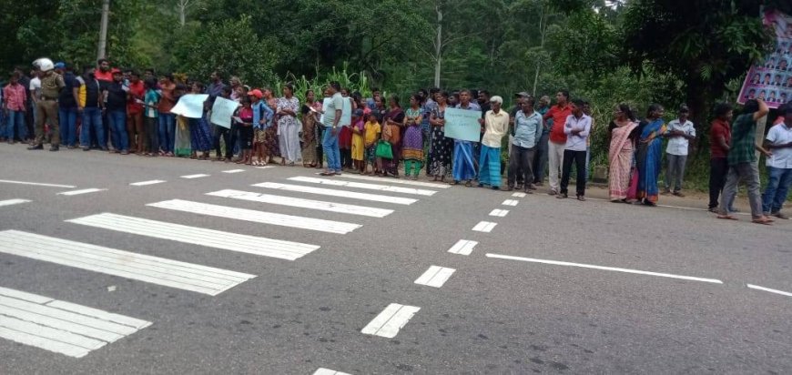 கண்டி - நுவரெலியா பிரதான வீதியின் ரம்பொடையில் பாதிக்கப்பட்ட தோட்டத் தொழிலாளர் குடும்பங்கள் பலரின் பங்கேற்புடன் இந்தப் போராட்டம் முன்னெடுக்கப்பட்டுள்ளது.