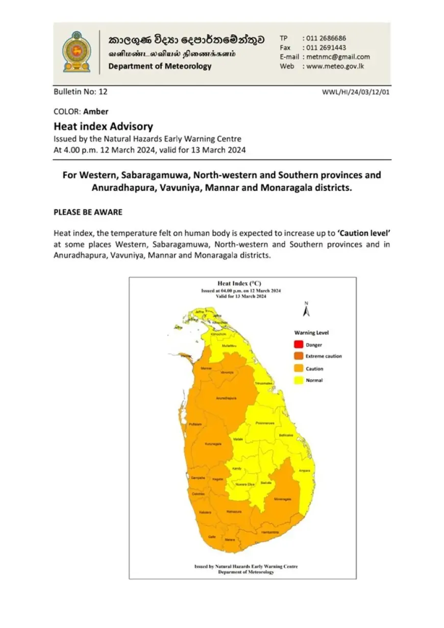 The prevalent hot weather conditions experienced in Sri Lanka will continue until May