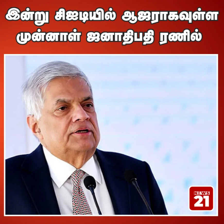 முன்னாள் ஜனாதிபதி ரணில் விக்ரமசிங்க இன்று (11) குற்றப் புலனாய்வுத் திணைக்களத்தில் (CID) ஆஜராக உள்ளார்.ரணில் இன்று குற்றப் புலனாய்வுப்