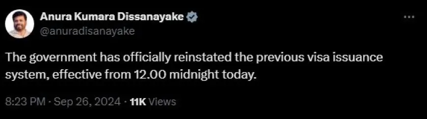 Breaking News - இன்று நள்ளிரவு முதல் விசா முறையில் மாற்றம் - ஜனாதிபதி அறிவிப்பு