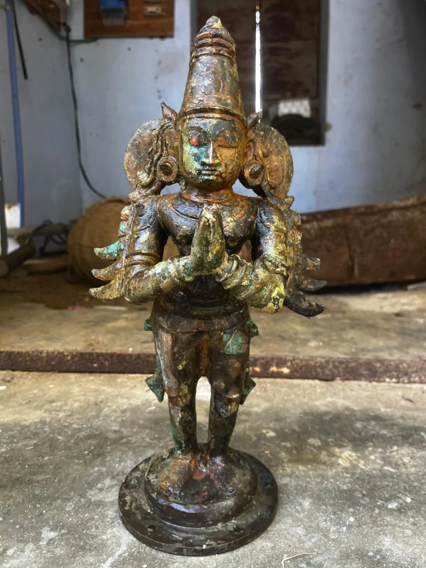கிணறில் இருந்து கிடைத்த ஐம்பொன் கருடாழ்வார் சிலை