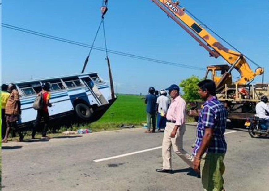 கதிர்காமத்தில் இருந்து யாத்திரிகளை ஏற்றிக் கொண்டு, அம்பாறை வழியூடாக மட்டக்களப்புக்கு சென்று கொண்டிருந்த தனியார் போக்குவரத்து பஸ், இன்று (21) அதிகாலை 03 மணியளவில் சம்மாந்துறை வங்களாவடிப் பிரதேசத்தில் குடைசாய்ந்து விபத்துக்குள்ளாகியது.