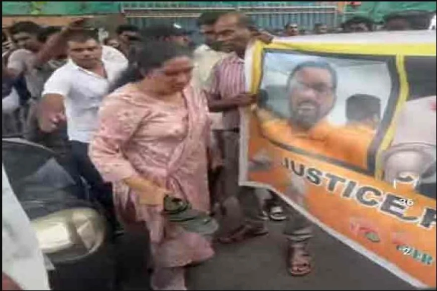 குற்றஞ்சாட்டப்பட்ட ஆசிரியரின் புகைப்படத்துக்கு பொதுமக்கள் இதன்போது செருப்பால் அடித்தனர்.