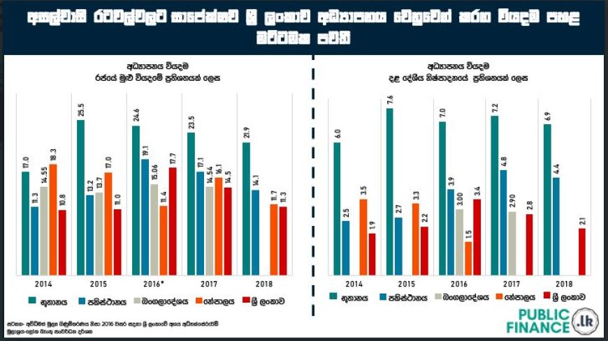 Public Finance.lk இணையத்தளத்தின் படி இலங்கையில் கல்விக்காக அரசு ஒதுக்குகின்ற நிதி அயல் நாடுகளுடன் ஒப்பிடுகையில் மிகவும் குறைவாகவே உள்ளது.
