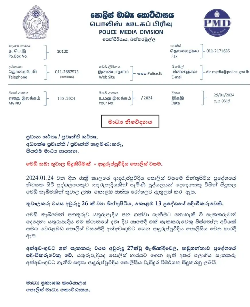 பாதிக்கப்பட்ட நபர் கொழும்பு தேசிய வைத்தியசாலையில் அனுமதிக்கப்பட்டுள்ளார்.