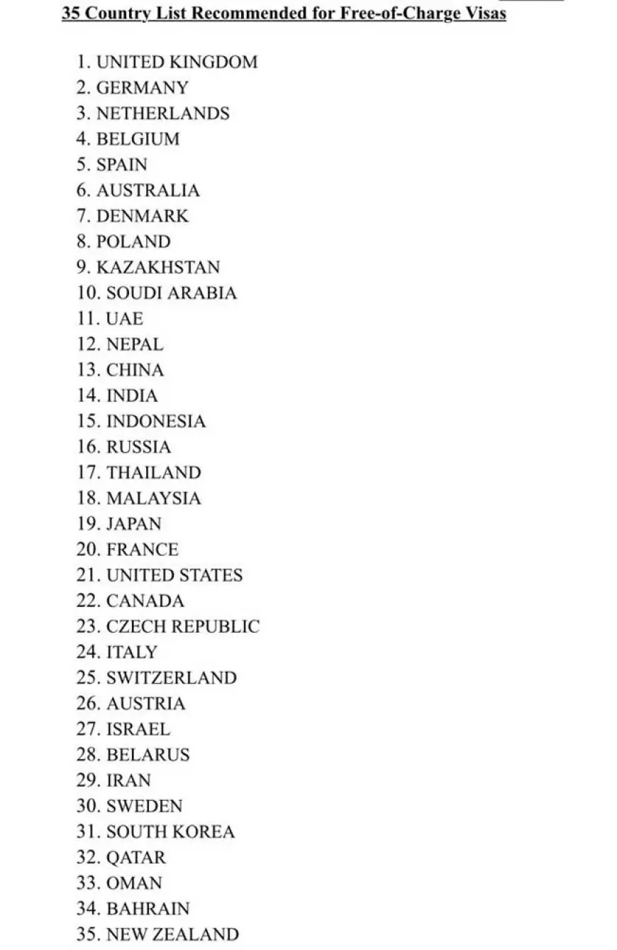 35 நாடுகளை சேர்ந்த பிரஜைகளுக்கு இலவச விசாவுடன் இலங்கைக்கு வருவதற்கான அனுமதியை அமைச்சரவை வழங்கியுள்ளது.