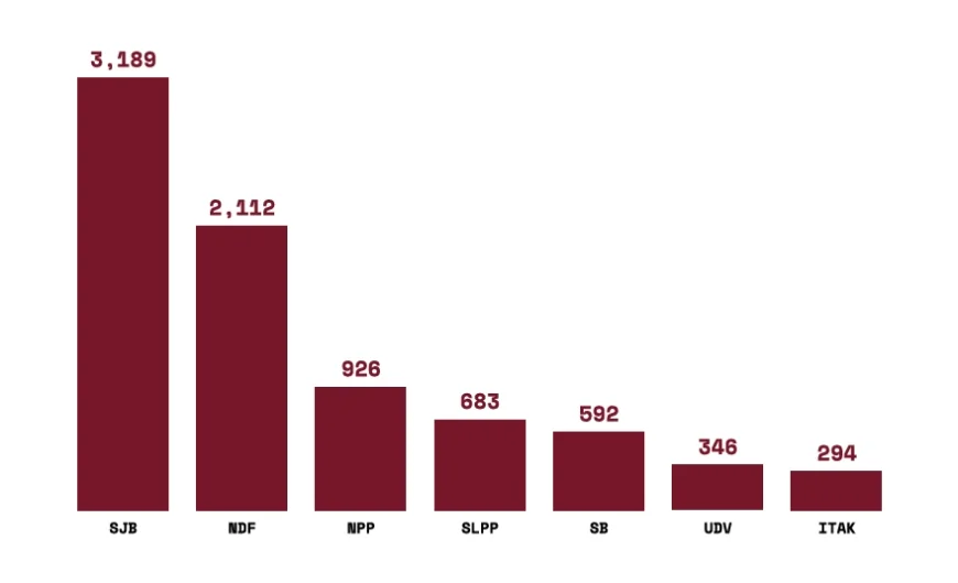 தேர்தல் பிரச்சாரக் காலத்தில் செயலில் இருந்த 2,292 தனித்துவமான விளம்பரதாரர் கணக்குகளை இந்த ஆய்வு அடையாளம் கண்டுள்ளது. ஆயினும், மொத்த விளம்பரங்களில் அரைவாசிக்கும் மேற்பட்டவை (56.4மூ), பதிவுசெய்யப்பட்ட அரசியல் கட்சியுடனோ அல்லது வேட்பாளருடனோ நேரடித் தொடர்பில்லாத மூன்றாம் தரப்பு கணக்குகளால் வெளியிடப்பட்டவை. அடையாளம் காணப்பட்ட கட்சிகளில், ஐக்கிய மக்கள் சக்தி(SJB) மற்றும் புதிய ஜனநாயக முன்னணி (NDF) ஆகியன விளம்பரங்களின் எண்ணிக்கையில் முன்னிலையில் இருந்தன. SJB பிரச்சாரக் காலத்தில் 3,189 விளம்பரங்களையும், NDF 2,112 விளம்பரங்களையும் வெளியிட்டிருந்தன.