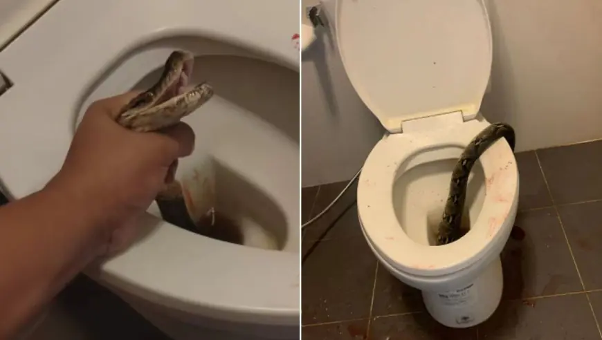 கழிவறையில் அமர்ந்திருந்த நபரின் பிறப்புறுப்பை 12 அடி மலைப்பாம்பு ஒன்று பதம்பார்த்த சம்பவம் அதிர்ச்சியை ஏற்படுத்தி உள்ளது.
