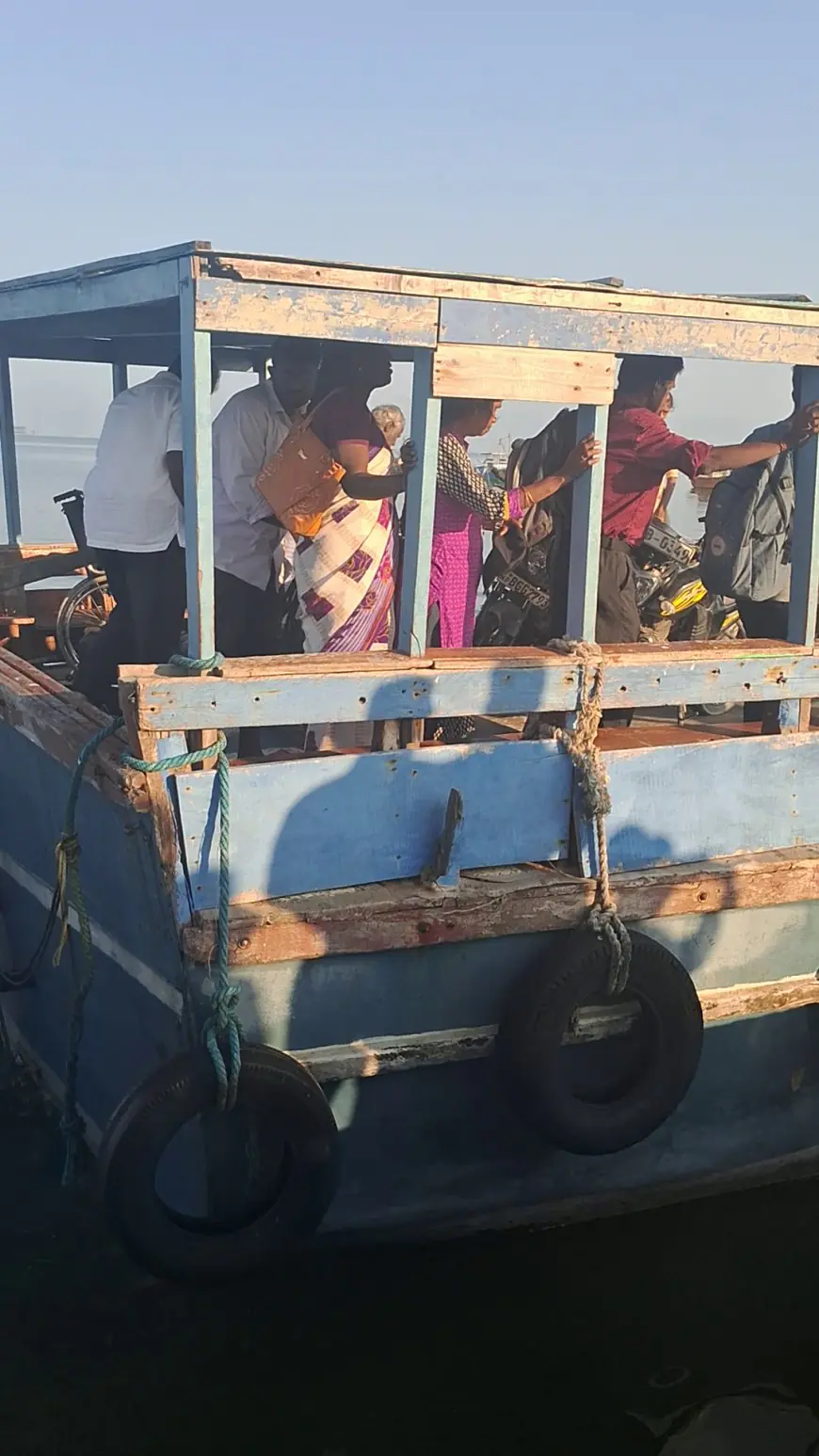 பயணிகளை மட்டுமல்ல, மோட்டார் சைக்கிள், பொருட்கள் மற்றும் விலங்குகளை கூட படகின் கூரையில் வைத்தே கொண்டு செல்ல வேண்டிய நிலை. மழை பெய்யும் போது படகுக்குள் தண்ணீர் மேலே உள்ள மர ஓட்டடைகள் வழியாகவும், பயணிகள் மீதும் கசியும் என்கிறார் ஜெயலக்ஷ்மி.